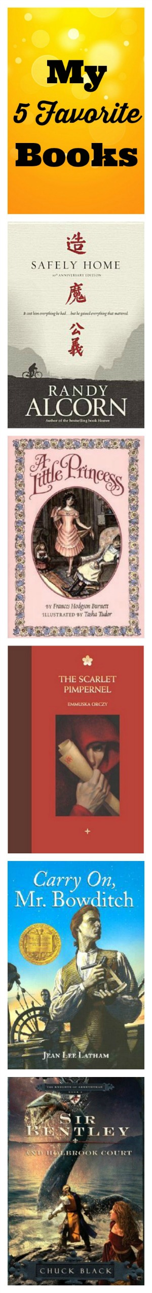 Thanks to all of you for sharing some of your favorite books. I know it’s hard to cull only five books out of extensive reading lists. I always wholeheartedly agree when people compare selecting favorite books to forcing a mother to pick her favorite child.